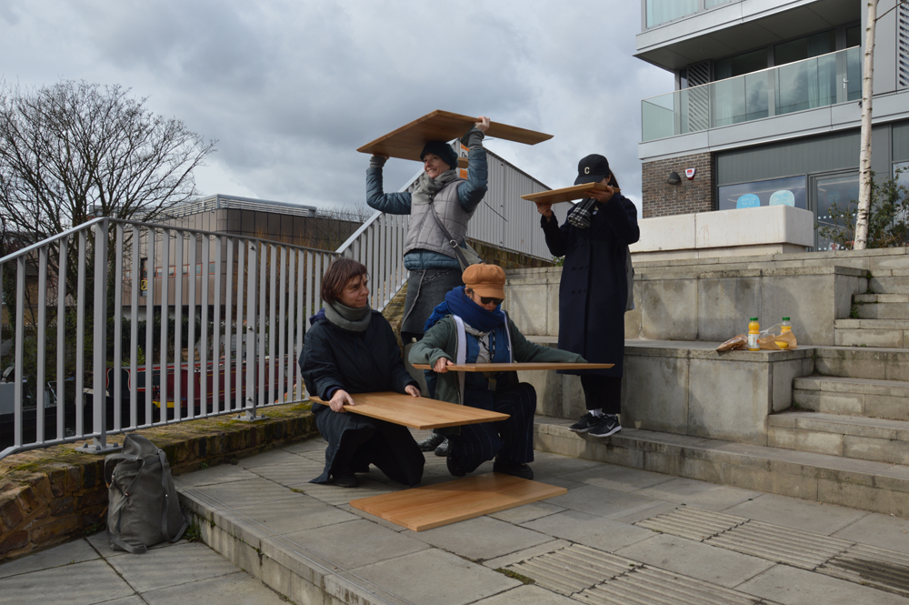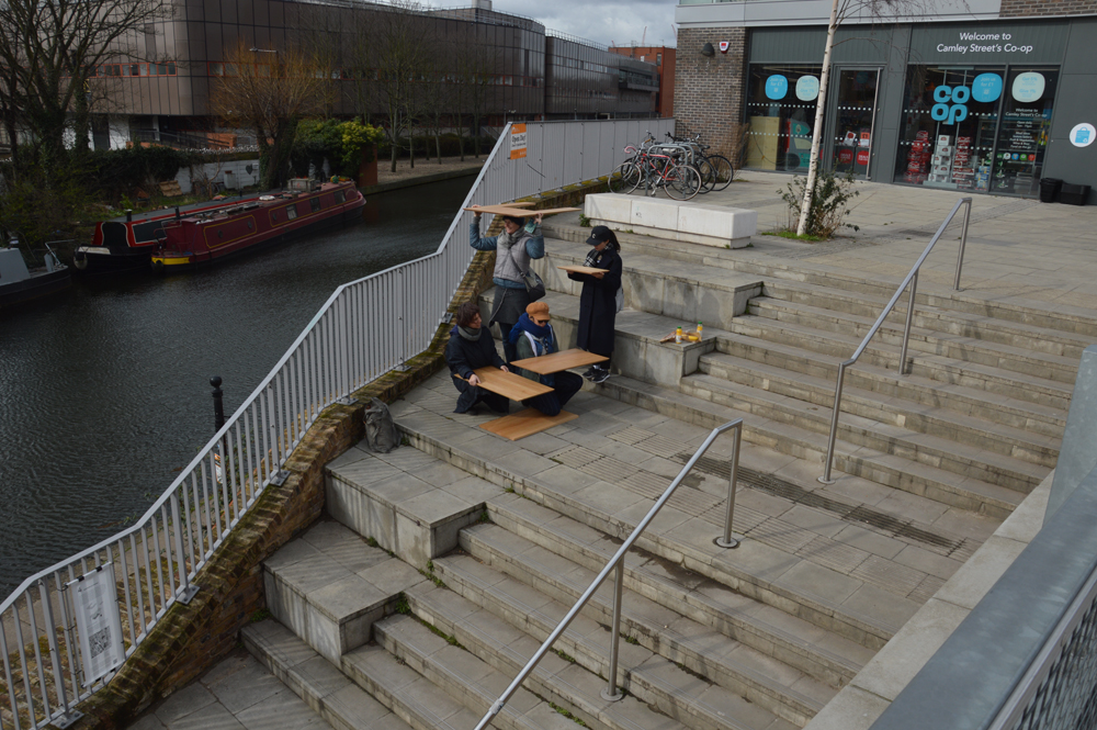Despite persisting attempts, it was impossible to investigate the owner of this stairway. Neither district nor neighbours were able give a clue. During the first night, the container in which the board was kept – and all its parts – wandered up the steps, close to the wall of a building, where a similar box was already positioned. There it remained untouched for the next eight days.