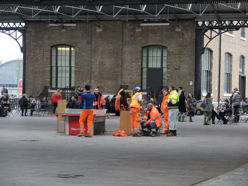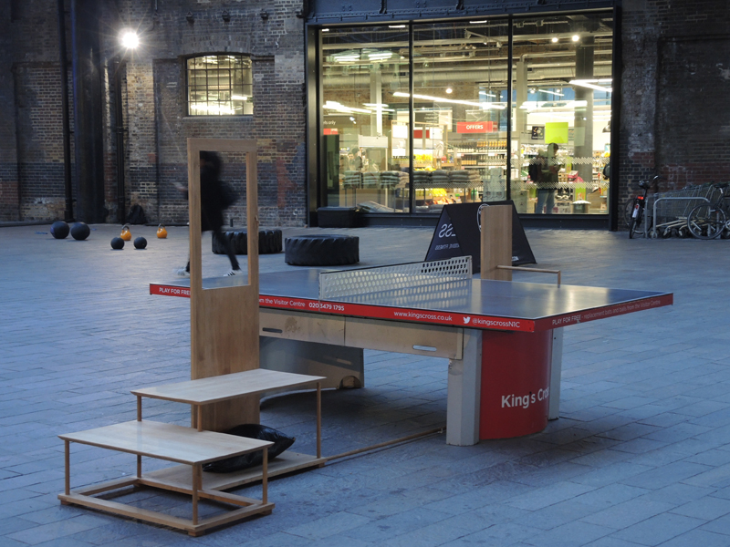 At the end of their tour, the visitors were able to find out whether they perceived the board as a hindrance to their freedom of movement or as a reason for finding new rules. The board was often used to pick up bags and clothing, and formed more and more a social space around the table playing.